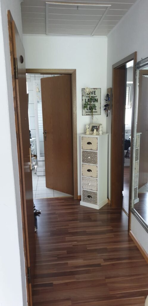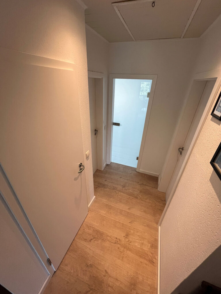 Inzwischen wurden alle Türen modernisiert und die Badezimmertüre durch eine satinierte Glastüre ersetzt, siehe Fotos unten.