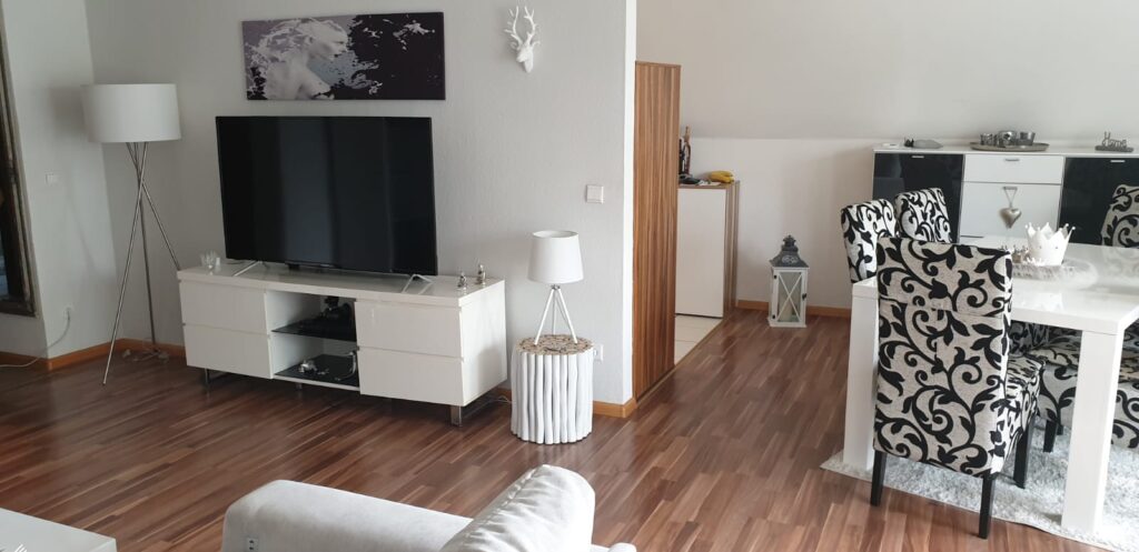 Nutzung der SAT-Anlage in der Miete enthalten (Kabelanschluss ebenfalls möglich), schnelles Internet bis 1GBit verfügbar. Glasfaser-Anschluss in Vorbereitung. Das Haus verfügt über eine große Photovoltaik-Anlage, eine Möglichkeit zur Mitnutzung über ein Mieterstrommodell ist in Vorbereitung. Eine Wallbox ist ebenfalls vorhanden und könnte nach Absprache mit genutzt werden.