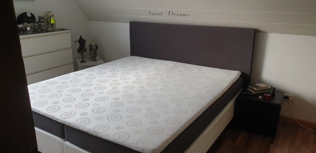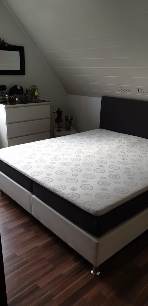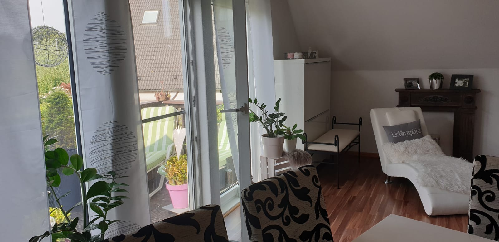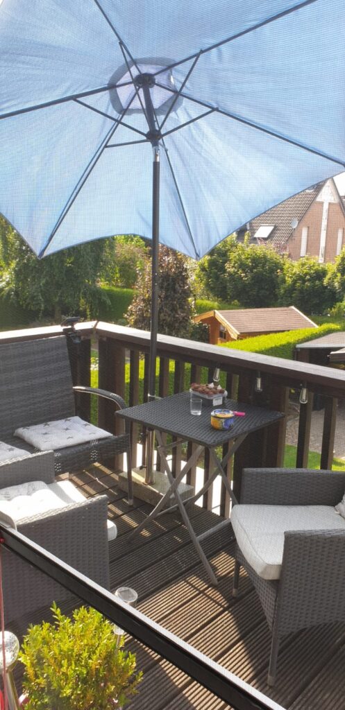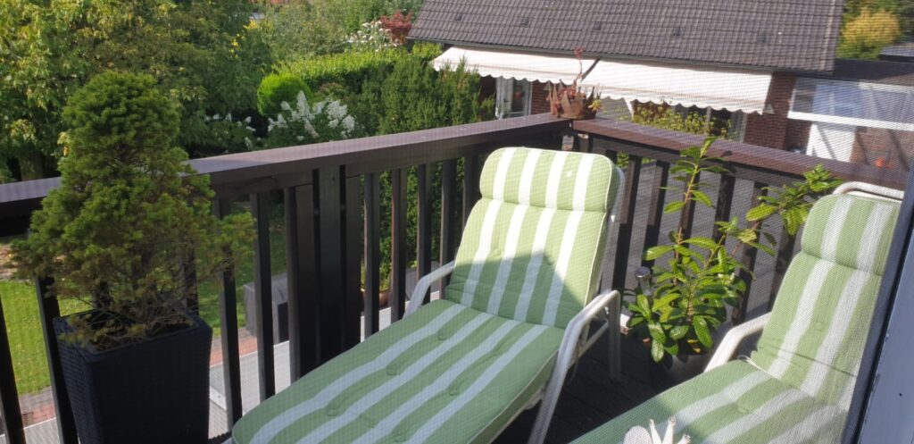 | 2 Zimmer | Schlafzimmer, gr. Bad, offener Wohn-/Essbereich mit Zugang zur Küche, kl. Abstellraum + Balkon mit Platz für Tisch mit Stühlen und Sonnenliege |